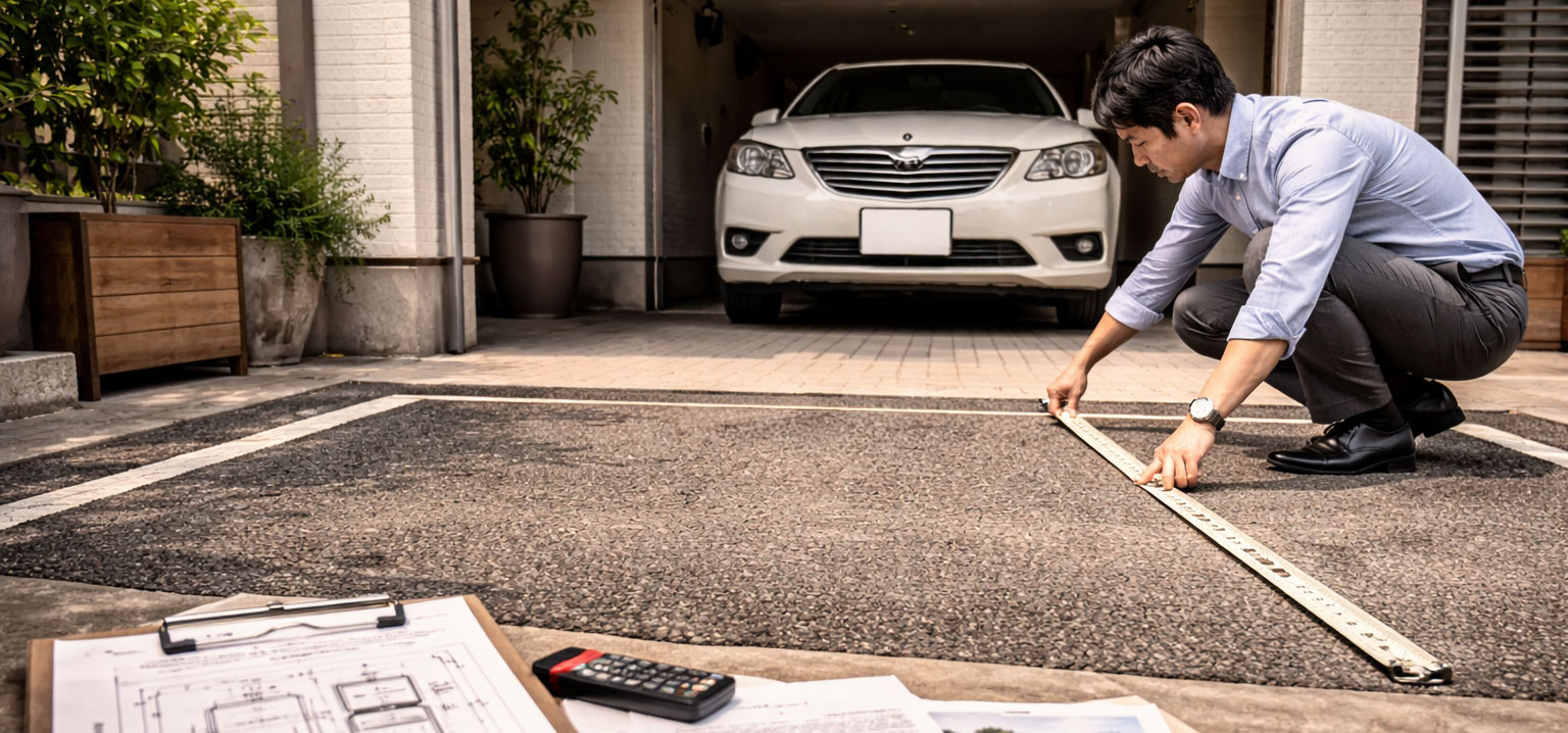 実務では、軽自動車から普通車へ変更するケースで寸法不足が発覚することが多いです。車両変更予定がある場合は余裕設計が望ましいです。